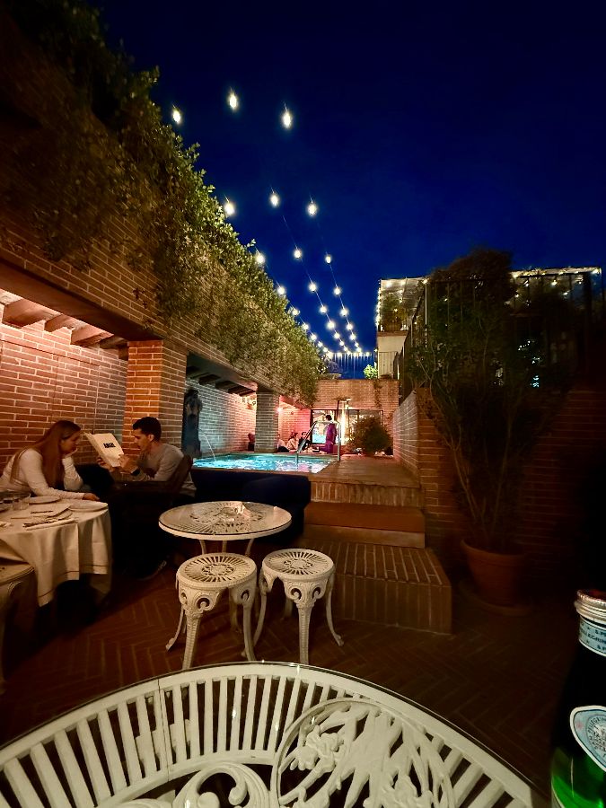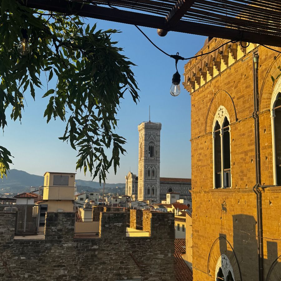 전반적으로 우아하고 로맨틱한 분위기가 흐르며, 특히 베키오 궁전의 독특한 전망을 감상할 수 있는 루프탑은 특별한 순간을 위한 완벽한 장소입니다. 감미로운 음악이 흐르고, 잔잔한 조명 아래에서 사랑하는 사람과 마주 앉아 피렌체의 밤을 만끽하는 순간은 그 자체로 한 편의 영화와 같습니다.