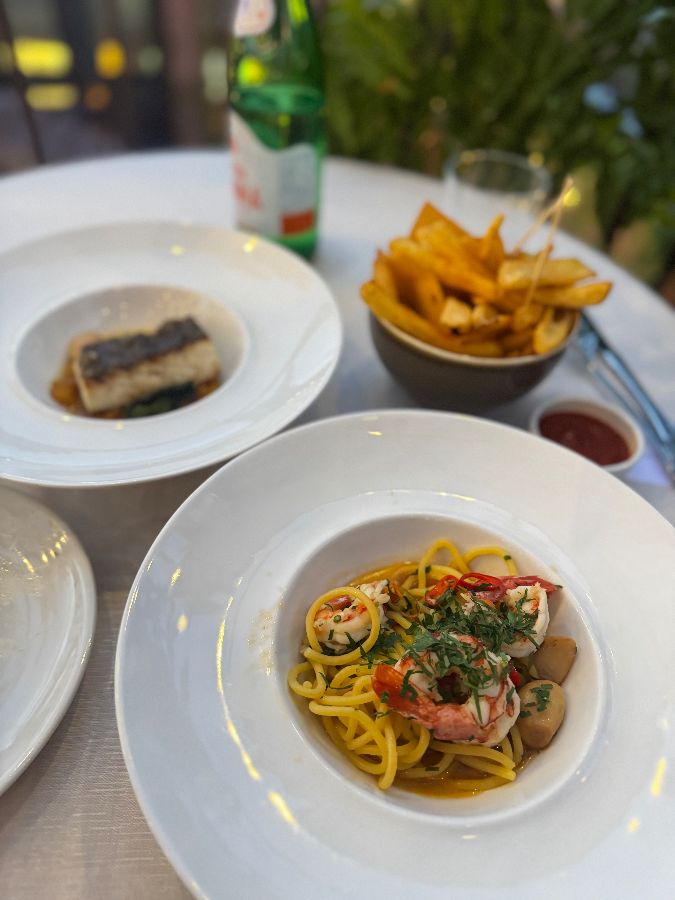 생선 타르타르는 입안에서 사르르 녹아내리는 신선함이 일품이며, 새우 파스타는 쫄깃한 면발과 통통한 새우의 조화가 환상적입니다. 생선 필레와 감자튀김은 겉은 바삭하고 속은 촉촉하게 완벽하게 조리되어 풍부한 맛과 식감을 선사합니다. 이탈리아 미식 여행에서 빼놓을 수 없는 티라미수는 부드러운 크림과 진한 커피 향이 어우러져 식사의 완벽한 마무리를 장식합니다.