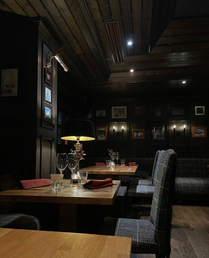 내부로 들어서면 어두운 나무 패널 벽과 천장, 그리고 섬세하게 배치된 조명들이 어우러져 깊이 있는 아늑함을 선사합니다. 마치 북유럽 산장의 오붓한 식당에 온 듯한 기분입니다. (Image 3) 손님들로 꽉 차 북적이는 와중에도 소음보다는 활기찬 에너지가 공간을 채우고, 테이블마다 놓인 작은 촛불은 따뜻한 온기를 더합니다. 격식과 편안함이 공존하는 이곳의 분위기는 방문객들에게 편안하면서도 특별한 경험을 선사하기에 충분합니다. 비록 어떤 이들은 캐주얼한 테이블 세팅을 아쉬워하기도 하지만, 이는 오히려 친근하고 부담 없는 식사를 가능하게 하는 Aurora Feast만의 매력으로 다가옵니다. 이곳은 4성급 호텔에 위치해 있지만, 겉치레보다는 본질적인 맛과 경험에 집중하는 철학을 엿볼 수 있습니다.