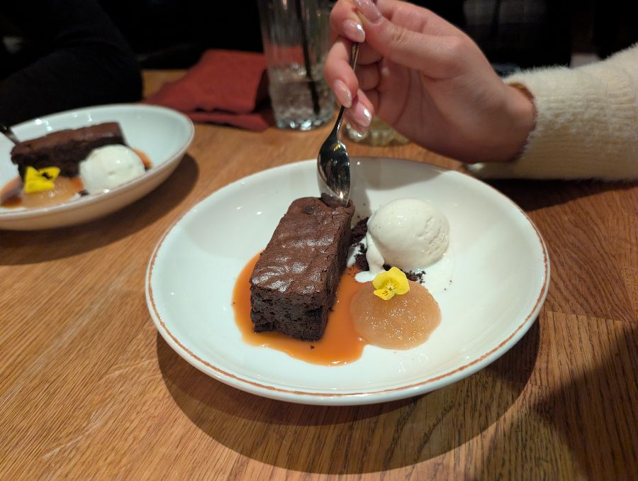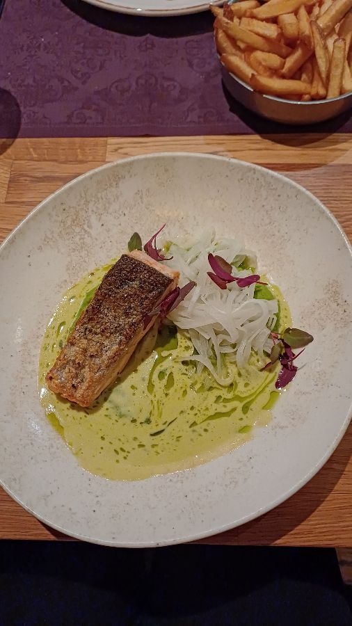 어떤 날에는 점심 뷔페를 통해 합리적인 가격으로 다양한 메뉴를 맛볼 수 있습니다. 신선한 채소가 가득한 샐러드바, 파스타, 그리고 따뜻한 수프 등 다채로운 구성은 여행자들에게 든든하고 만족스러운 한 끼를 제공합니다. 메인 디쉬로 제공되는 연어 요리 역시 훌륭한 선택입니다. 완두콩 퓌레를 곁들인 연어는 부드럽고 촉촉하며, 깔끔한 맛을 선사합니다. (Image 17) 모든 요리가 빠르게 준비되어 나오기 때문에, 바쁜 일정 속에서도 여유롭고 맛있는 식사를 즐길 수 있습니다.