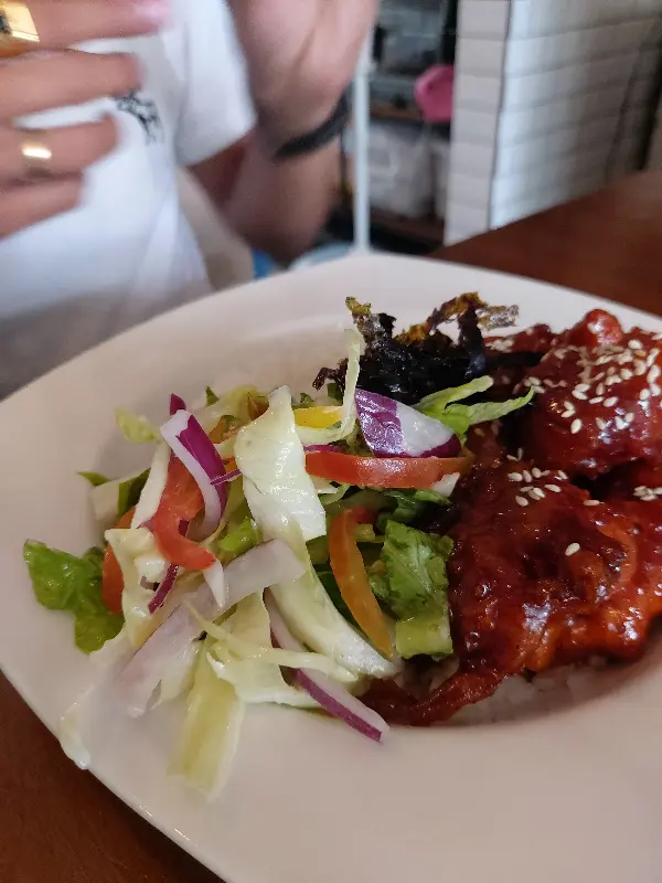 주문 후 얼마 지나지 않아, 따뜻한 요리가 테이블 위에 놓였다. 멕시코풍 치킨 요리는 겉은 바삭하고 속은 촉촉한 치킨에 매콤한 소스를 곁들여, 입맛을 돋우는 샐러드와 함께 제공되었다. 비빔밥은 신선한 채소와 고기가 조화롭게 어우러져, 보기만 해도 군침이 돌았다.