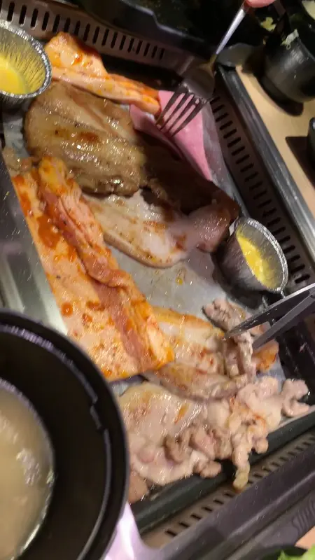다음으로 돼지고기를 맛보았다. 돼지고기는 와규보다는 두께가 있었지만, 맛은 기대 이하였다. 퍽퍽한 식감에 아쉬움을 느꼈다. 더욱이 일부 방문자들은 돼지고기에서 나는 특유의 비린내 때문에 불쾌감을 느꼈다고 한다. 하지만, 다행히도 나는 심하게 느끼지는 못했다. 돼지고기 자체의 퀄리티 편차가 큰 듯하다.