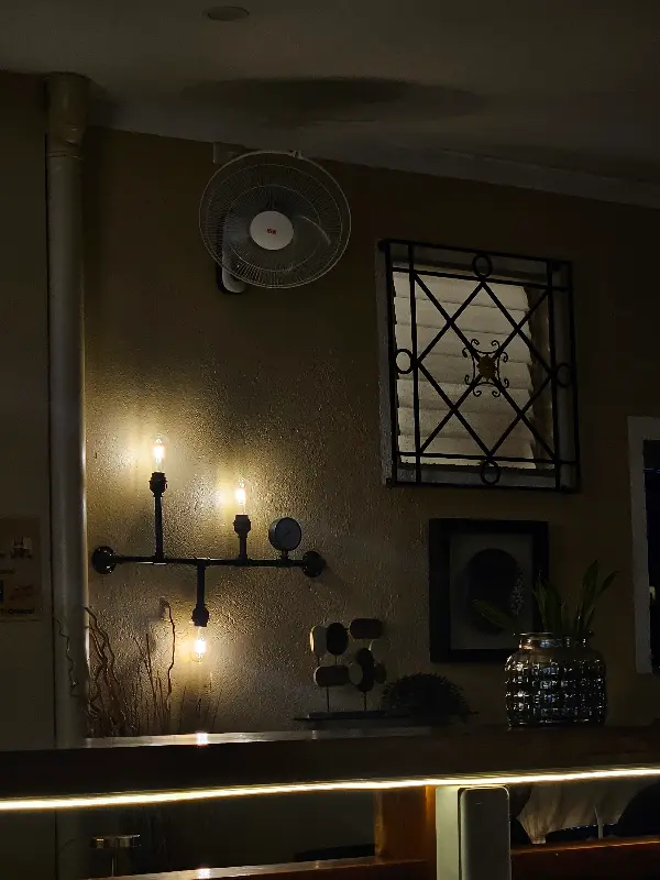 벽에는 독특한 조명과 장식들이 눈길을 사로잡았다. 파이프를 연결해 만든 듯한 독특한 조명은 은은하게 빛을 내며 공간에 따뜻함을 더했고, 벽에 걸린 그림들은 맛집의 분위기를 한층 더 고풍스럽게 만들어 주었다. 선풍기가 천장에 매달려 있었지만, 답답함보다는 오히려 자연스러운 멋을 더하는 듯했다.