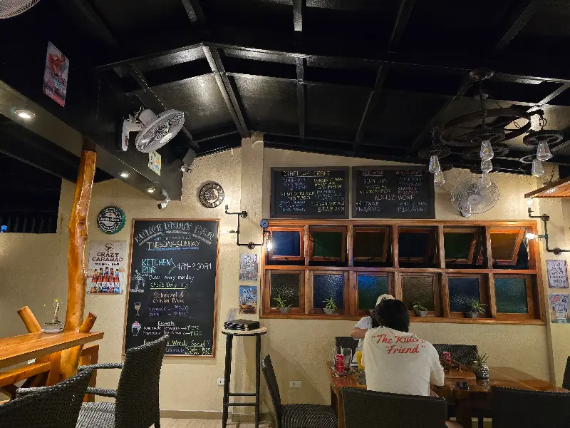 문을 열고 들어선 순간, 눈앞에 펼쳐진 풍경은 필리핀이 아닌 마치 유럽의 어느 작은 맛집에 와 있는 듯한 착각을 불러일으켰다. 벽돌과 나무로 꾸며진 인테리어, 은은한 조명 아래 놓인 테이블, 그리고 흘러나오는 잔잔한 음악까지 모든 요소가 완벽하게 조화를 이루며 아늑하고 편안한 분위기를 자아냈다. 한쪽 벽면에는 다양한 종류의 맥주병이 진열되어 있었는데, 마치 작은 맥주 박물관을 연상케 했다.