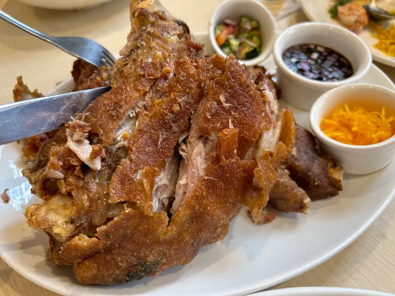 제리스 그릴의 대표 메뉴 중 하나인 바삭한 파타. 겉은 한없이 바삭하고 속은 촉촉한 돼지 족발 튀김이다. 칼로 겉 껍질을 톡톡 두드리면 경쾌한 소리가 식욕을 자극한다. 젓가락으로 살점을 떼어 입에 넣는 순간, 바삭함과 부드러움이 환상적인 조화를 이룬다. 함께 제공되는 소스에 찍어 먹으면 짭짤하면서도 달콤한 맛이 풍미를 더한다.