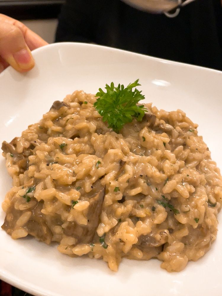 크림 소스와 버섯이 조화롭게 어우러진 리조또입니다. 부드럽고 고소한 맛이 특징이며, 파슬리 한 조각이 신선함을 더합니다.