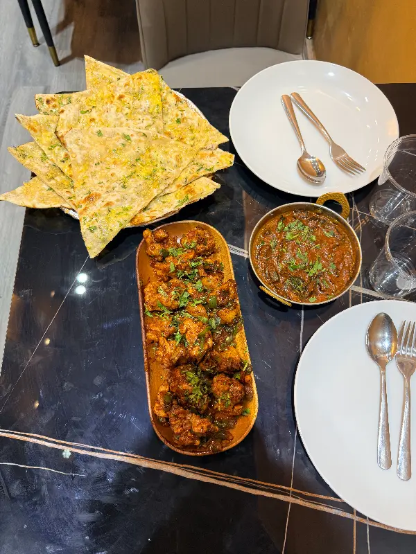 문을 열고 들어서자, 생각보다 아담하고 아늑한 공간이 펼쳐졌다. 깔끔하게 정돈된 테이블과 은은한 조명이 편안함을 더했다. 첫인상은 ‘깨끗하고 조용하다’는 느낌이었다. 유니폼을 갖춰 입은 친절한 웨이터의 안내를 받아 자리에 앉으니, 메뉴판이 눈에 들어왔다. 빈디 키 사브지, 고비 파코다, 파니르 버터 마살라, 달 프라이, 난, 지라 라이스 등 다채로운 인도 요리 이름들이 미각을 자극했다. 채식 메뉴뿐 아니라 버터 치킨, 치킨 카레, 양고기 마살라, 생선 튀김 등 다양한 선택지가 있어 더욱 만족스러웠다.