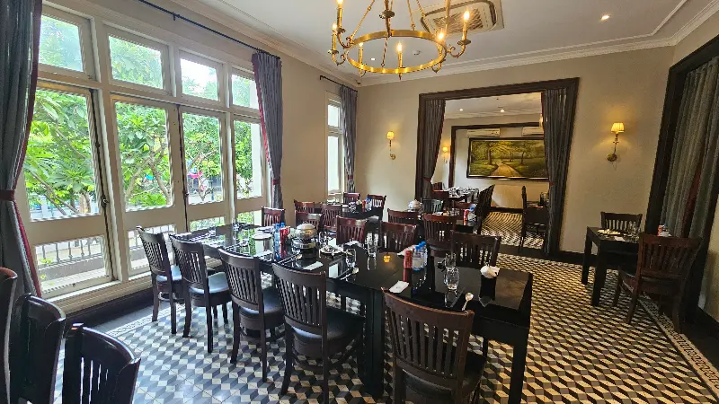 베트남 여행의 마지막 밤, 무언가 특별한 경험으로 장식하고 싶었다. 현지의 맛과 분위기를 만끽할 수 있는 곳, 바로 메종센 뷔페였다. 웅장한 규모와 다양한 음식 종류, 그리고 무엇보다 해산물을 마음껏 즐길 수 있다는 점이 우리의 기대를 한껏 부풀게 했다. 택시에서 내리자, 고풍스러운 건물과 아름다운 조경이 눈앞에 펼쳐졌다. 마치 다른 세계에 온 듯한 느낌에 설렘이 가득 찼다.
