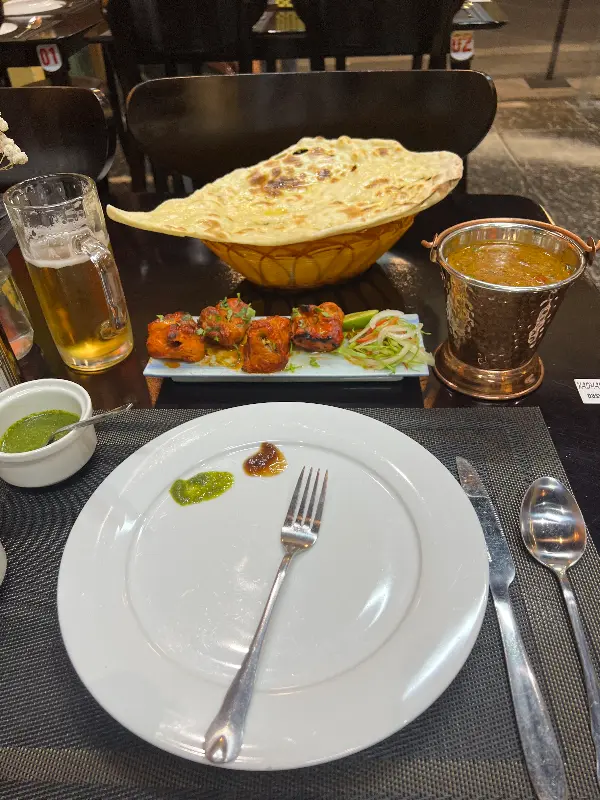 직원분의 친절한 추천을 받아 Prawns Butter Masala를 주문했다. 잠시 후, 테이블 위에 놓인 커리는 보기만 해도 군침이 돌았다. 붉은 빛깔의 커리 소스 위로 탱글탱글한 새우가 가득했고, 고소한 버터 향이 은은하게 코를 자극했다. 첫 입을 입에 넣는 순간, 부드러운 커리 소스와 톡톡 터지는 새우의 식감이 환상적인 조화를 이루었다. 향신료의 풍미가 입안 가득 퍼져 나가면서, 한국에서 흔히 먹던 인도 커리와는 차원이 다른 깊은 맛을 느낄 수 있었다.