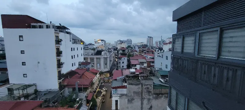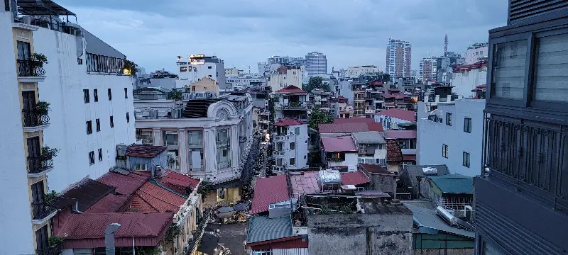 레스토랑의 가장 큰 매력은 바로 발코니 좌석입니다. 발코니 문을 열고 나가면, 하노이의 아름다운 도시 전경이 한눈에 들어옵니다. 붉은 지붕들이 옹기종기 모여 있는 모습은 마치 한 폭의 그림 같습니다. 시원한 바람을 맞으며 도시 풍경을 감상하는 여유, 슝 레스토랑에서만 누릴 수 있는 특별한 경험입니다.