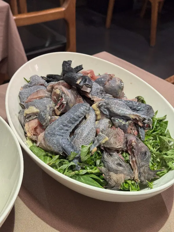 신선한 야채와 함께 제공되는 실키 치킨, 핫팟에 넣어 끓이면 부드러운 식감과 깊은 풍미를 느낄 수 있습니다.