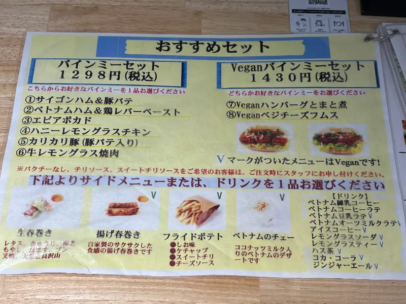 메뉴판을 살펴보니, 쇠고기 포, 허니 레몬그라스 치킨, 비건 베지 치즈 후무스 등 다양한 종류의 바인미가 준비되어 있었다. 특히 이시하라 사토미 씨가 추천했다는 “베트남 햄 & 레버 페이스트” 바인미는 꼭 맛봐야 할 메뉴처럼 느껴졌다. 고민 끝에 추천 메뉴인 쇠고기 포 세트를 주문했다. 세트에는 바인미, 포, 그리고 사이드 메뉴 하나가 포함되어 있어 합리적인 가격으로 다양한 맛을 즐길 수 있다는 점이 매력적이었다.