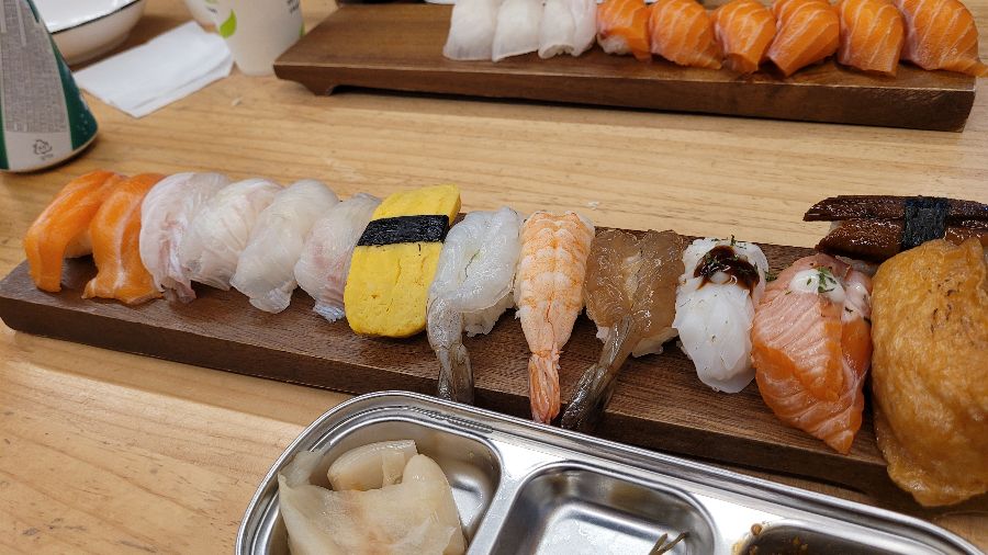 다양한 종류의 스시를 한 번에 맛볼 수 있는 모듬 초밥. 가성비 최고의 선택이다.