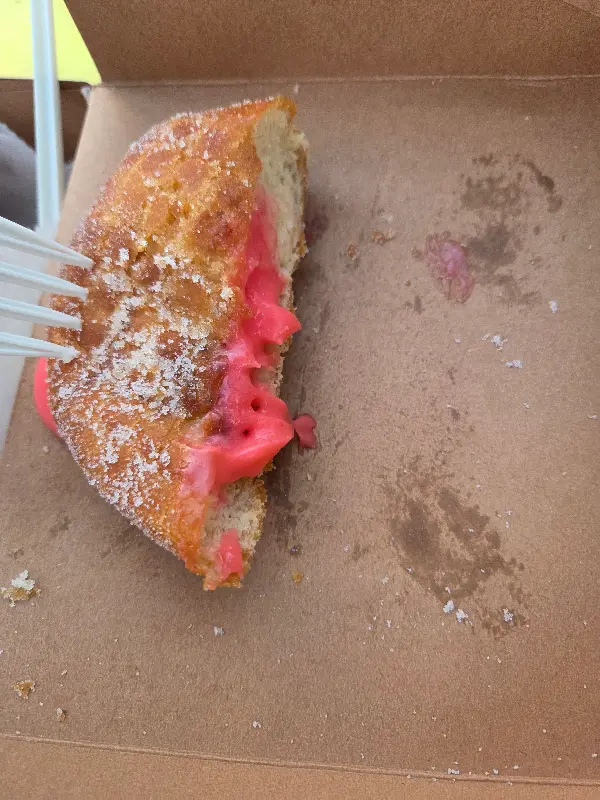 달콤한 커스터드 크림이 가득 찬 말라사다, 부드러운 식감과 달콤한 맛의 조화가 훌륭하다.