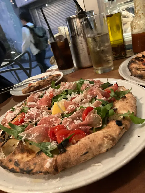 비 내리는 하코네의 저녁, 빗소리를 들으며 따뜻한 화덕 피자가 간절해졌다. 9시까지 영업하는 희망의 빛 같은 곳, 바로 그곳으로 향했다. 문을 열자 따스한 온기가 감돌았다. 은은한 조명 아래, 바 테이블에 자리를 잡고 앉으니 편안함이 밀려왔다. 외국인 손님들이 꽤 많았고, 활기찬 분위기가 여행의 설렘을 더했다.