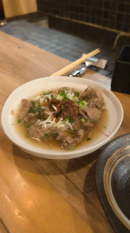 니쿠노키노스케는 하코네 유모토 역에서 그리 멀지 않은 곳에 위치해 있었습니다. 역 앞의 번화한 거리에서 살짝 벗어난 골목에 자리 잡고 있어서인지, 한적하고 여유로운 분위기가 느껴졌습니다. 문을 열고 들어서자, 은은한 조명과 함께 깔끔하고 모던한 인테리어가 눈에 들어왔습니다. 테이블 간 간격도 넉넉해서 편안하게 식사를 즐길 수 있을 것 같았습니다. 환풍 시설이 약해 기름 냄새가 약간 난다는 리뷰가 있었지만, 제가 방문했을 때는 크게 거슬리지 않았습니다. 오히려 은은하게 풍기는 고기 굽는 냄새가 식욕을 자극했습니다. 직원분들의 친절한 안내를 받으며 자리에 앉으니, 따뜻한 물수건과 함께 메뉴판이 놓여 있었습니다. 세심한 배려에 감동하며, 어떤 음식을 맛볼지 행복한 고민에 빠졌습니다.