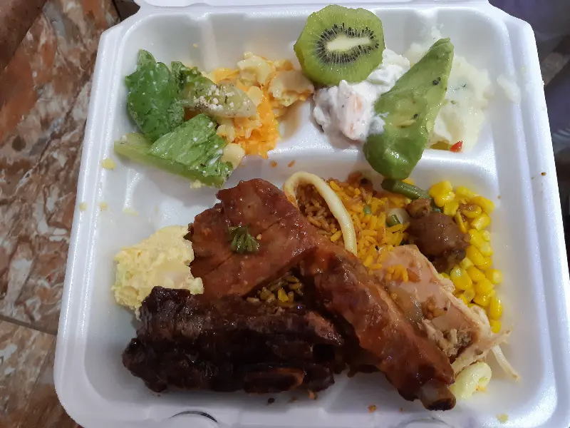 눈앞에 펼쳐진 음식들은 그야말로 황홀경이었다. 윤기가 자르르 흐르는 바비큐 립, 바삭하게 튀겨진 프라이드치킨, 촉촉한 옥수수, 싱싱한 채소 샐러드까지… 마치 할렘의 맛을 한 곳에 모아놓은 듯했다.