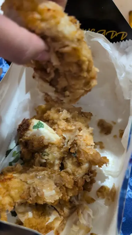 다음으로 생선 플래터를 맛보았습니다. 겉은 바삭하고 속은 촉촉한 생선은 입안에서 살살 녹았습니다. 함께 제공된 소스는 생선의 풍미를 더욱 깊게 만들어주었습니다. 큼지막한 치킨 텐더는 시크릿 칙스 소스와 환상적인 조합을 이루었습니다. 텐더 자체도 훌륭했지만, 특제 소스가 더해지니 그 맛이 배가 되었습니다. 겉은 바삭하고 속은 촉촉한 튀김옷과 부드러운 닭고기의 조화는, 정말 잊을 수 없는 맛이었습니다.