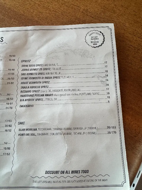 타불라 라사는 매일 맛있는 해피아워 메뉴를 제공한다. 저렴한 가격으로 훌륭한 와인과 음식을 즐길 수 있는 기회이니, 놓치지 말자. 특히 금요일 오후에는 직장인들이 퇴근 후 이곳에 모여 해피아워를 즐기는 모습을 흔히 볼 수 있다.