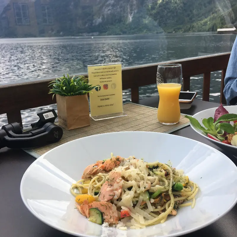 할슈타트 호숫가에 자리 잡은 Osk Skihütte Hallstatt는 그 자체로 한 폭의 그림이다. 쨍한 하늘 아래 펼쳐진 푸른 호수, 그 위를 스치는 시원한 바람은 레스토랑에 들어서기 전부터 이미 마음을 사로잡는다. 테라스에 앉아 바라보는 풍경은 그야말로 장관이다. 마치 호수 위에 떠 있는 듯한 기분으로 식사를 즐길 수 있다.