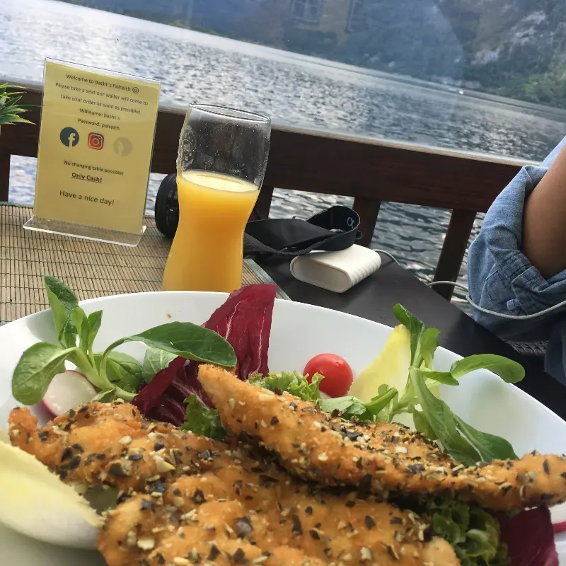 메뉴를 펼쳐 들자 다양한 음식들이 눈에 들어온다. 슈니첼, 파스타, 샐러드 등 다양한 선택지 앞에서 잠시 고민에 빠졌다. “직원들은 친절하고 슈니첼과 스파게티는 매우 맛있습니다”라는 리뷰를 참고하여 슈니첼과 파스타를 주문하기로 결정했다.