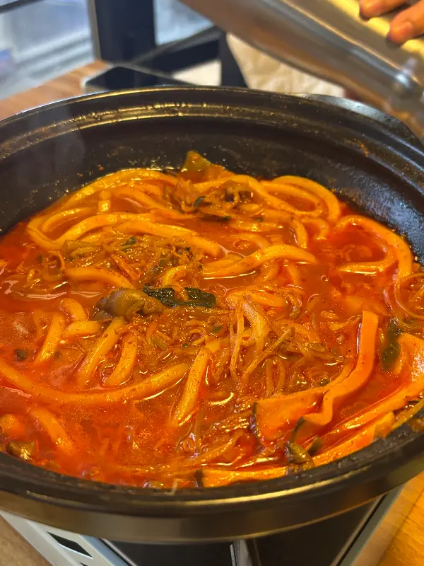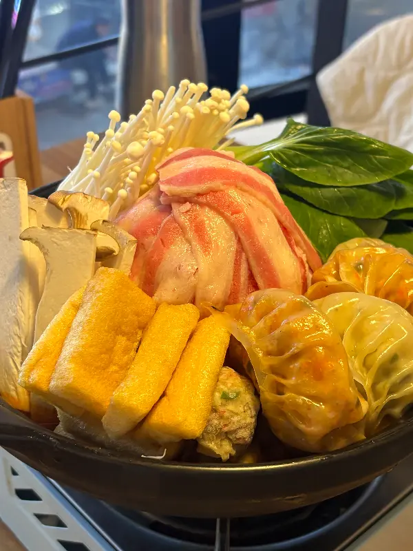육수가 끓기 시작하자, 매콤하면서도 깊은 향이 코를 간지럽힙니다. 국자로 육수를 떠 맛보니, 칼칼하면서도 시원한 맛이 온몸을 따뜻하게 감싸는 듯합니다. 만두는 겉은 쫄깃하고 속은 촉촉하며, 입안 가득 퍼지는 육즙은 풍미를 더합니다. 돼지고기는 잡내 없이 깔끔하고, 채소들은 신선하고 아삭한 식감을 자랑합니다.