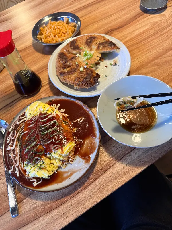 만두전골 외에도 다양한 사이드 메뉴들이 준비되어 있습니다. 특히 눈에 띄는 것은 오코노미 교자와 타코 교자입니다. 오코노미 교자는 김치와 고기 두 가지 맛을 반반씩 즐길 수 있어 더욱 매력적입니다. 겉은 바삭하고 속은 촉촉한 교자에 오코노미야키 소스와 마요네즈를 곁들여 먹으니, 색다른 풍미를 느낄 수 있습니다. 타코 교자는 겉은 바삭하고 속은 쫄깃한 문어가 씹히는 맛이 일품입니다. 일본 퓨전 스타일의 요리들은 부엉이식당만의 개성을 드러냅니다.