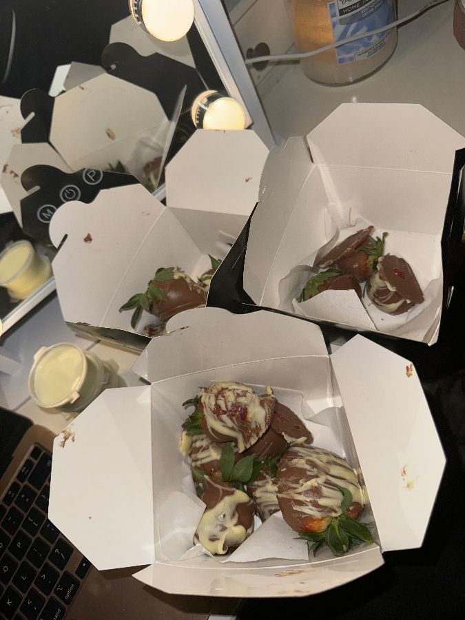 Dr. Dessert는 다채로운 디저트 메뉴로 단맛을 사랑하는 모든 이들을 만족시킵니다. 특히 신선한 딸기에 달콤한 초콜릿을 코팅한 메뉴는 비주얼만으로도 시선을 사로잡습니다. 붉고 탐스러운 딸기가 진한 다크 초콜릿과 부드러운 화이트 초콜릿으로 장식되어, 한입 베어 물면 상큼함과 달콤함이 완벽하게 어우러집니다. 여러 개의 초콜릿 코팅 딸기가 상자에 담겨 있는 모습은 선물용으로도 손색이 없으며, 신선함이 그대로 느껴져 더욱 매력적입니다.