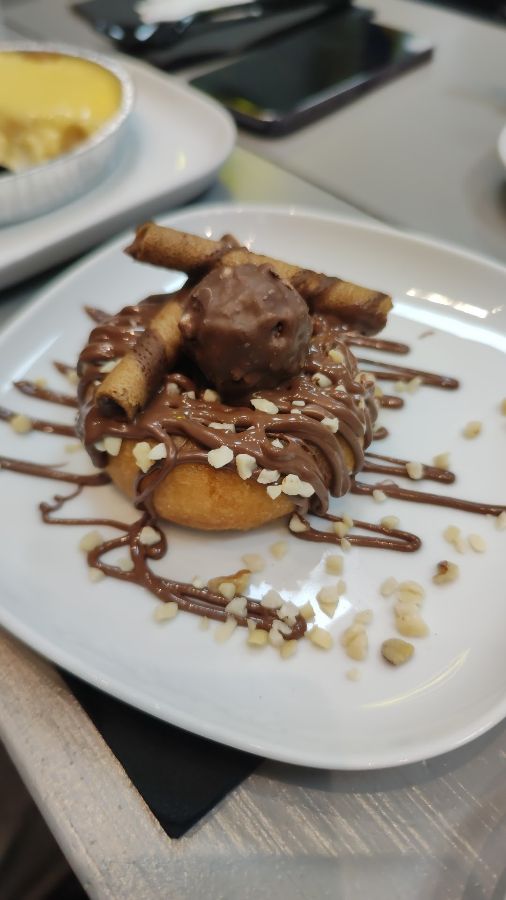 초콜릿 도넛 또한 Dr. Dessert의 달콤한 매력을 한껏 보여주는 메뉴입니다. 갓 튀긴 듯한 도넛 위에 진한 초콜릿 드리즐과 고소한 견과류가 뿌려져 있으며, 그 위에는 초콜릿 웨이퍼 스틱과 커다란 초콜릿 볼이 올라가 있습니다. 한 입 베어 물면 바삭함과 부드러움, 그리고 달콤함이 한데 어우러져 오감을 만족시킵니다. 이처럼 Dr. Dessert는 다양한 초콜릿 디저트들을 통해 방문객들에게 끊임없이 달콤한 즐거움을 선사합니다.
