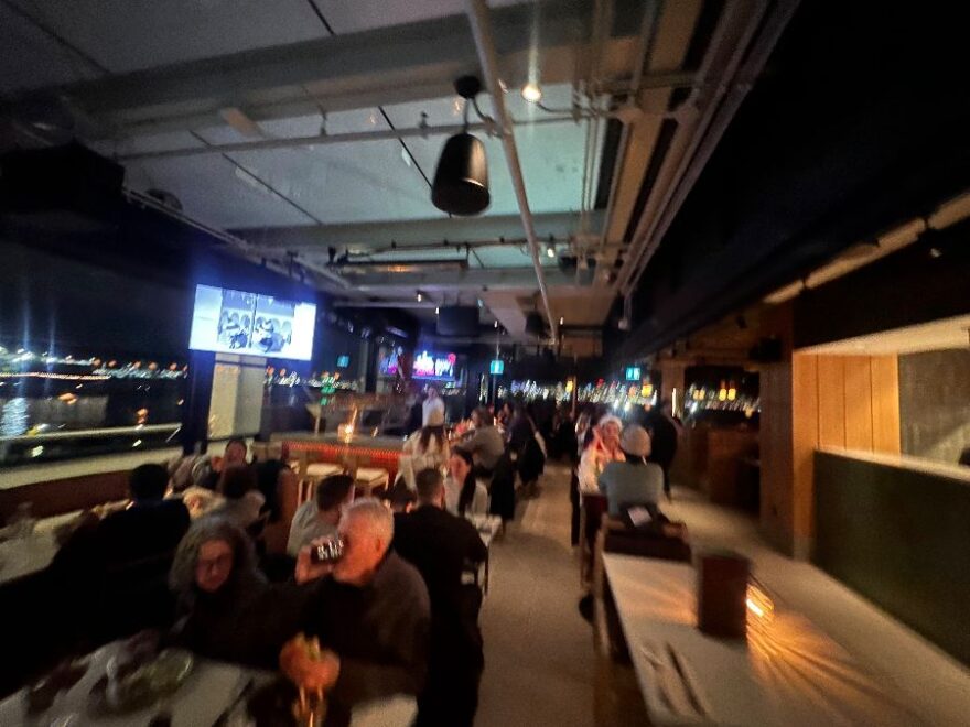 활기 넘치는 킹 탭스의 내부 모습. 어두운 조명과 많은 사람들로 북적거린다.