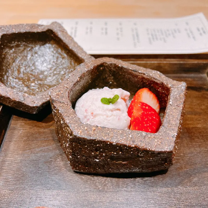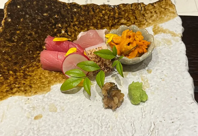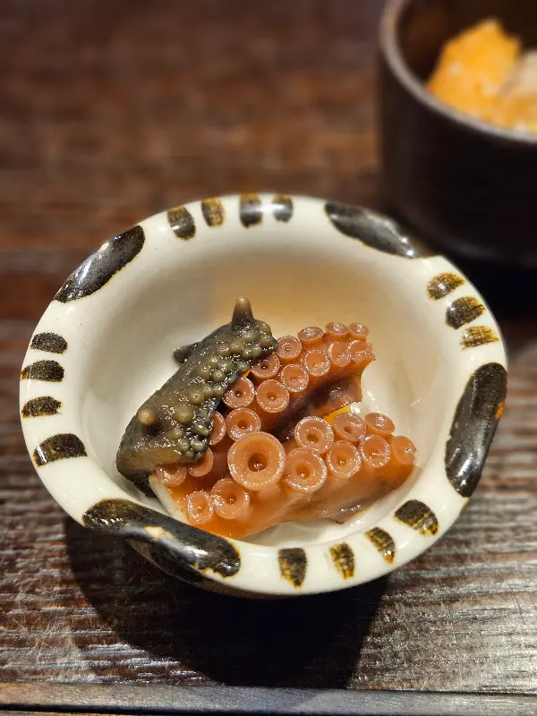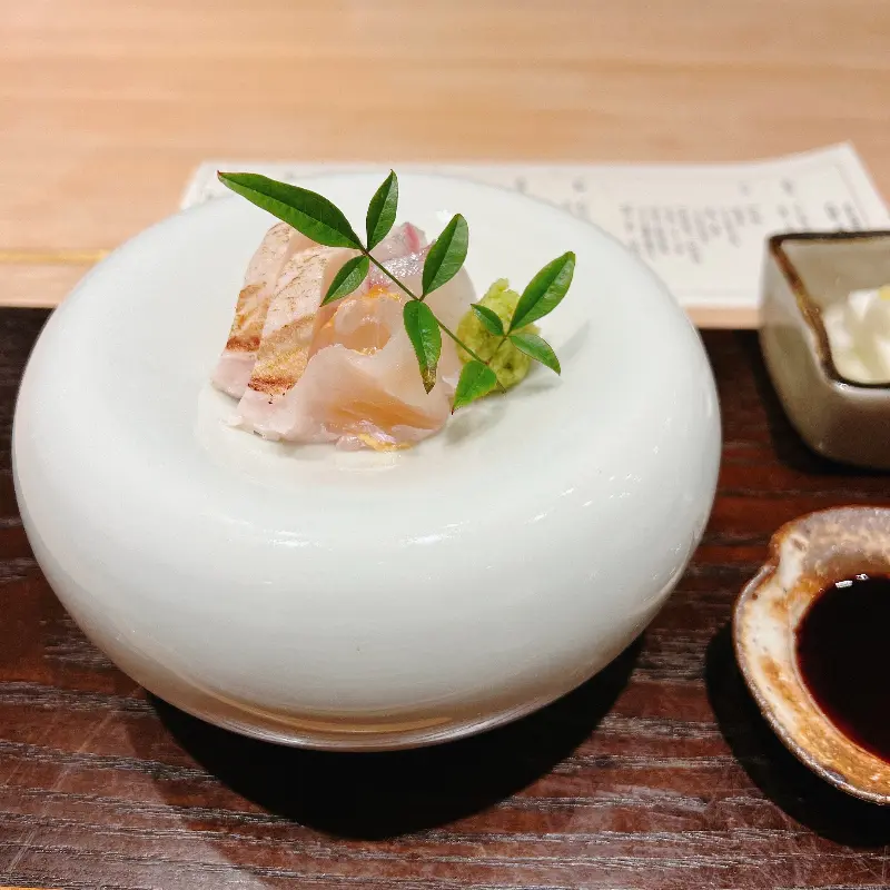따뜻하게 데워진 그릇에 담겨 나온 스이모노는 맑고 투명한 국물이 인상적이었다. 한 모금 마시니 은은하면서도 깊은 다시의 풍미가 온몸을 감싸는 듯했다. 셰프님의 정성이 느껴지는 깊은 맛이었다. 계절마다 바뀌는 재료를 사용한다고 하니, 다음 방문에는 어떤 스이모노를 맛볼 수 있을지 벌써부터 기대가 된다.