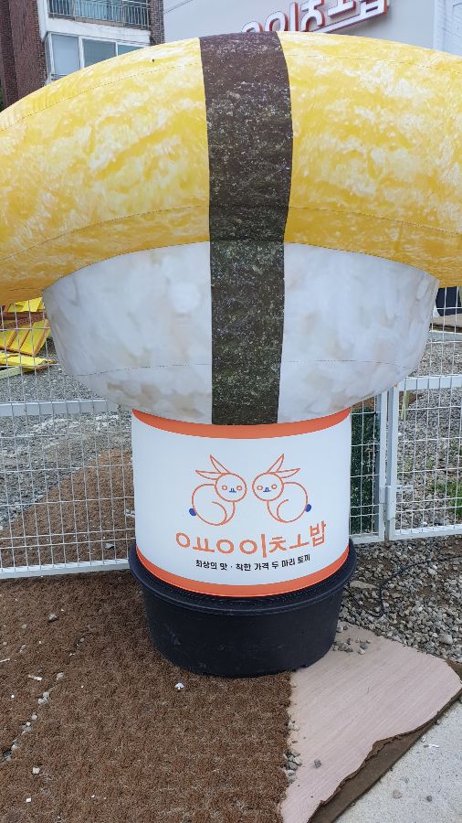 오이시 초밥 입구에 설치된 거대한 계란 초밥 모형