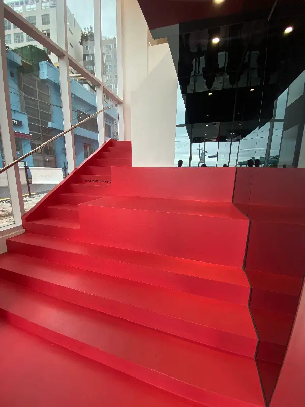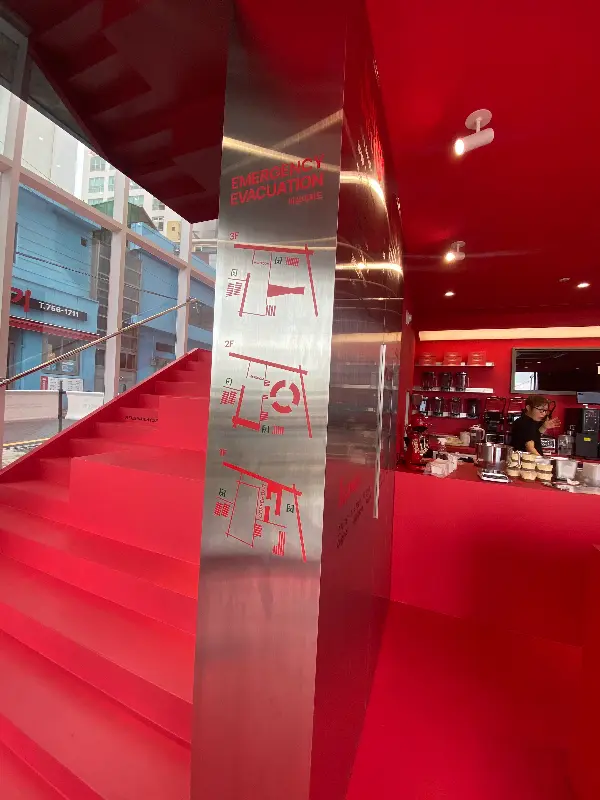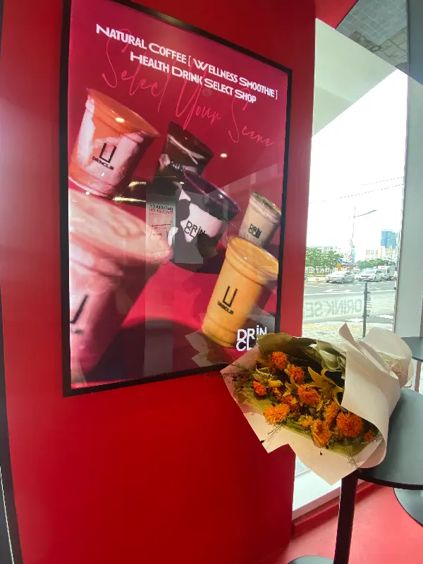 드링클럽에 들어서자마자 강렬한 붉은색 인테리어가 시선을 사로잡았다. 마치 현대 미술관에 온 듯한 착각을 불러일으키는 감각적인 디자인은 평범한 카페 그 이상의 특별함을 선사했다. 특히 붉은색 계단은 드링클럽의 상징과도 같은 존재감을 뽐내며, 방문객들의 포토 스팟으로 인기를 끌고 있었다.