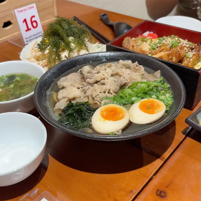 저녁 식사 시간을 지나서 방문했더니, 아쉽게도 우동이 솔드아웃되었습니다. 그래서 라멘과 카레, 그리고 김치와 새우튀김을 추가로 주문했습니다. 라멘은 조금 아쉬운 맛이었지만, 카레는 정말 맛있었습니다.