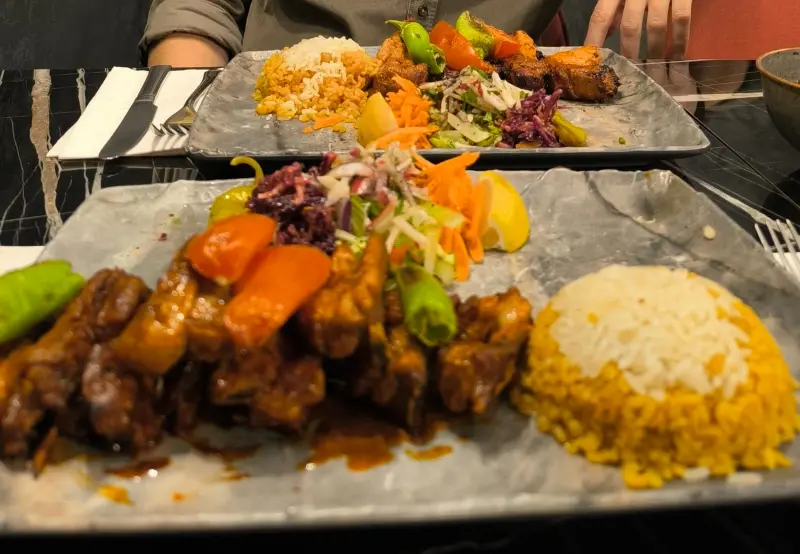 FM Mangal에 들어서면 가장 먼저 눈에 띄는 것은 편안하고 아늑한 분위기입니다. 테이블 간 간격이 넓어 여유로운 식사를 즐길 수 있으며, 은은한 조명이 공간을 부드럽게 감싸줍니다. 직원들의 친절한 미소와 따뜻한 환영 인사는 마치 오랜 친구를 만난 듯한 기분을 선사합니다. 예약 없이 방문했음에도 불구하고 넓은 자리를 안내받을 수 있었던 점도 만족스러웠습니다.