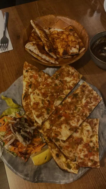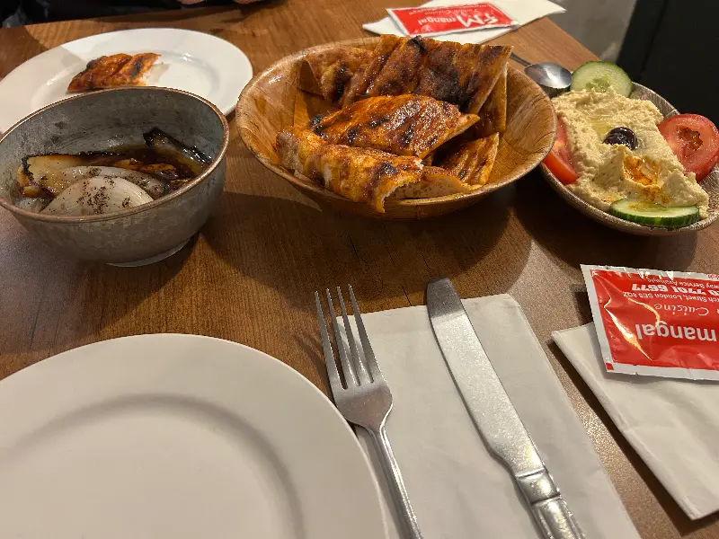 FM Mangal에서 식사를 시작할 때 절대 놓쳐서는 안 될 것이 바로 식전 빵입니다. 갓 구워져 따뜻하고 부드러운 터키 빵은 그 자체로도 훌륭하지만, 함께 제공되는 레드/어니언 딥과 함께 먹으면 그 맛이 배가됩니다. 빵의 고소함과 딥의 매콤하면서도 달콤한 조화는 입맛을 돋우는 데 완벽하며, 메인 요리에 대한 기대감을 한껏 높여줍니다. 실제로 한 방문객은 “식전빵은 계속 생각날 위험한 맛”이라고 극찬하기도 했습니다.