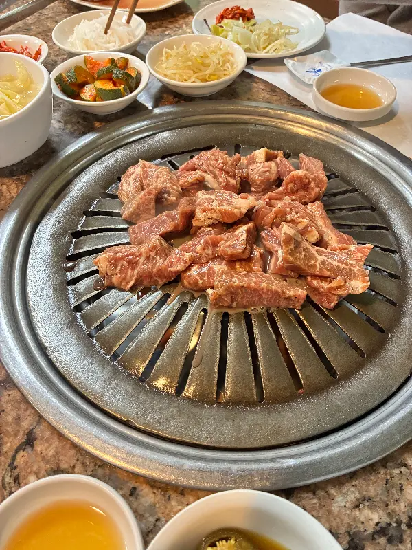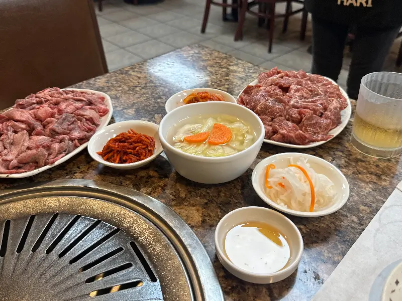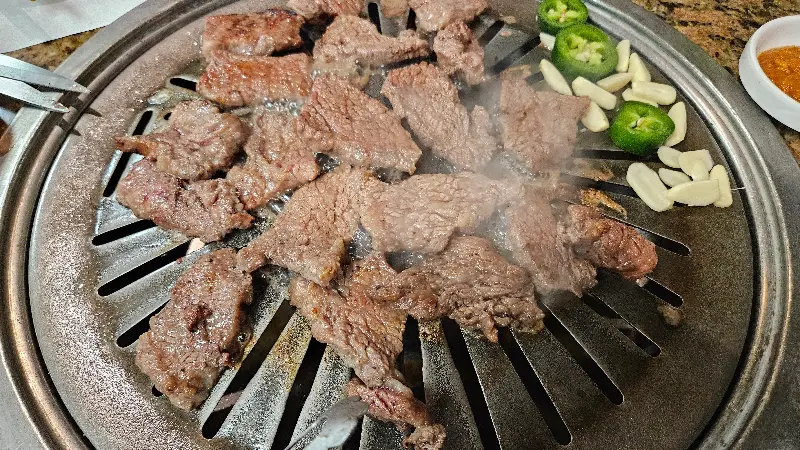 물론 아쉬운 점도 있었습니다. 제가 방문했을 때는 손님이 많지 않은 시간대였음에도 불구하고, 서빙하시는 분들이 자주 보이지 않았습니다. 고기를 직접 구워야 했는데, 뒤집어주는 것 외에는 별다른 도움을 받지 못했습니다. 불판에서 세제 냄새가 나는 문제도 있었습니다. 이 부분에 대해 이야기했을 때, 사과 대신 불판을 갈아주겠다는 대답만 돌아온 점은 다소 아쉬웠습니다. 하지만 음식 맛은 정말 훌륭했습니다. 특히 동치미 국수의 맛은 일품이었고, 푸짐한 양과 친절한 서비스는 이러한 단점을 상쇄하고도 남았습니다.