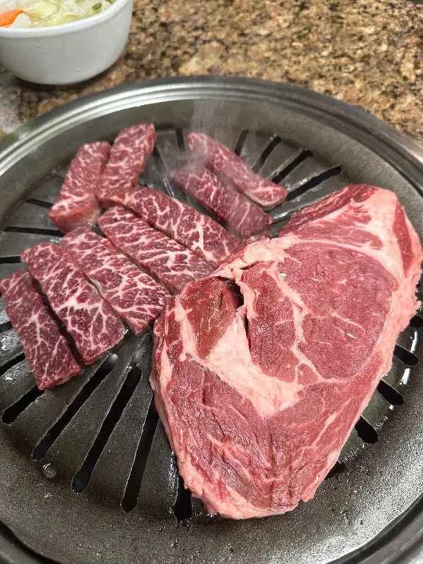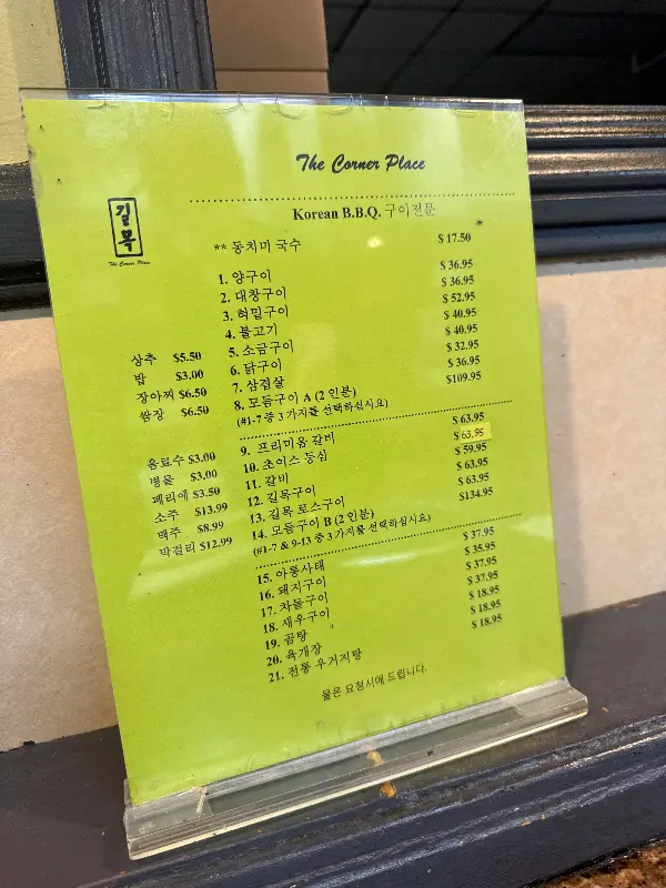 저는 이곳의 대표 메뉴인 프리미엄 갈비를 주문했습니다. 메뉴판(Image 3)을 보니 다양한 종류의 고기와 식사 메뉴가 준비되어 있었지만, 역시 갈비의 유혹을 뿌리칠 수 없었습니다. 길목식당의 갈비는 금액을 보고 살짝 놀랐지만, 실제로 받아보니 그 양이 한국의 2인분은 족히 넘어 보였습니다. 고기의 질은 물론, 양까지 푸짐하니 만족스러울 수밖에요.
