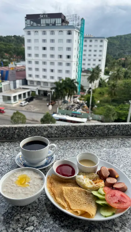 한 달 넘게 호텔에 머무르면서, 자연스럽게 7층 레스토랑은 저의 주 식사 공간이 되었습니다. 숙박에 포함된 아침 식사는 유럽식과 베트남식 메뉴가 다양하게 준비되어 있어 매일 아침 새로운 메뉴를 맛보는 즐거움을 누릴 수 있었죠. 갓 구운 빵과 페이스트리, 쿠탑, 파이는 물론, 든든한 메인 요리와 환상적인 나폴레옹 케이크까지, 모든 음식이 신선하고 훌륭했습니다.