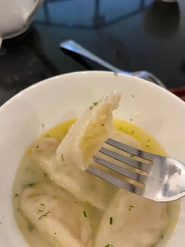 펠메니와 바레니키는 이곳에서 꼭 맛봐야 할 메뉴입니다. 부드럽고 얇은 반죽은 질기지 않았고, 속은 촉촉하면서도 느끼하지 않아 완벽한 조화를 이루었습니다. 펠메니는 양도 푸짐했고, 바레니키는 너무 맛있어서 순식간에 해치웠습니다. 펠메니를 포크로 살짝 찔러 육즙을 음미하는 순간, 입 안 가득 퍼지는 풍미는 잊을 수 없는 경험이었습니다.