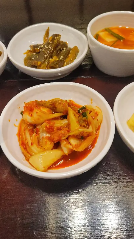 자리에 앉자마자 눈에 들어오는 것은 깔끔하게 정돈된 테이블과 정갈하게 놓인 반찬들이었다. 하얀 도자기 그릇에 담긴 김치는 보기만 해도 입안에 침이 고였다. 젓가락을 들어 한 입 맛보니, 아삭하면서도 시원한 맛이 일품이었다. 짭짤한 깻잎장아찌와 고소한 콩나물 무침, 그리고 시원한 물김치까지, 하나하나 정성이 느껴지는 맛이었다. 마치 한국에서 먹는 것보다 더 맛있게 느껴지는 것은, 아마도 고향에 대한 그리움 때문이었을 것이다. 리뷰에서 언급된 대로, 반찬만으로도 소주 한 병을 비울 수 있을 것 같다는 생각이 들었다.