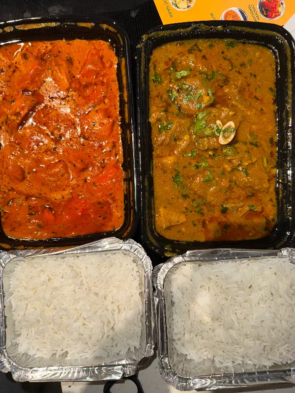 커리와 밥이 함께 제공되는 모습. 인도 음식의 정석을 보여준다.