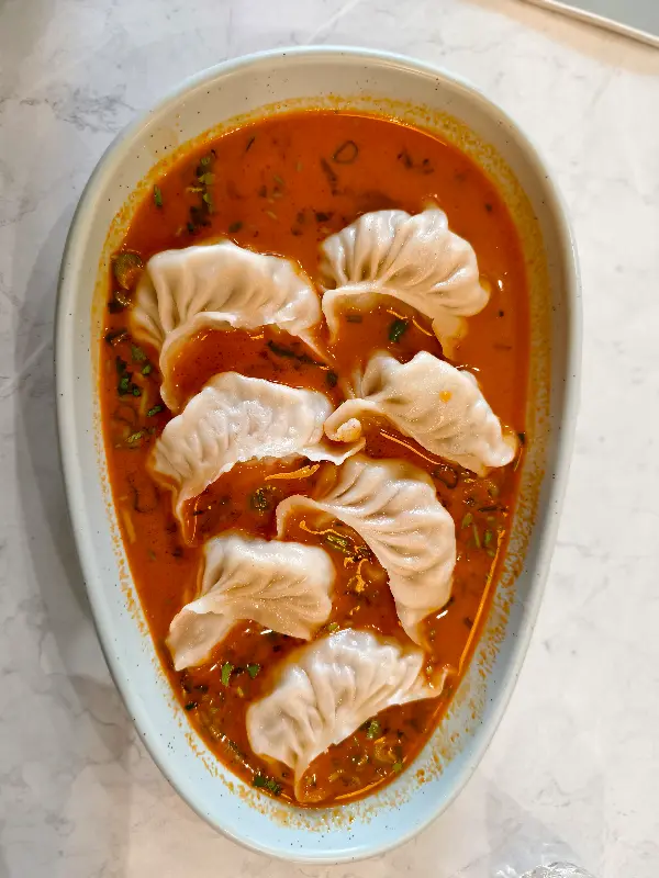 주문한 카트만두 소울 볼이 테이블에 놓이자, 그 화려한 비주얼에 감탄했습니다. 붉은빛 소스에 잠긴 촉촉한 만두는 마치 예술 작품처럼 아름다웠습니다. 첫 입을 베어 무는 순간, 입안 가득 퍼지는 풍부한 맛에 저절로 미소가 지어졌습니다. 쫄깃한 만두피와 육즙 가득한 소는 완벽한 조화를 이루었고, 매콤하면서도 깊은 풍미의 소스는 잊을 수 없는 맛을 선사했습니다. 곁들여진 야채들은 신선하고 아삭아삭한 식감을 더해주어, 맛의 균형을 완벽하게 맞춰주었습니다. 리뷰에서 보았던 것처럼, 정말 5/5점을 줄 만한 훌륭한 맛이었습니다.