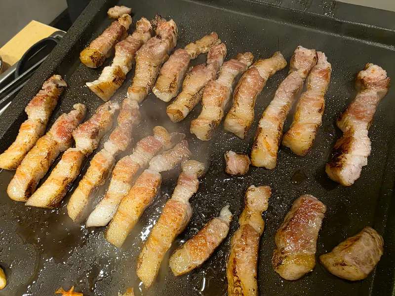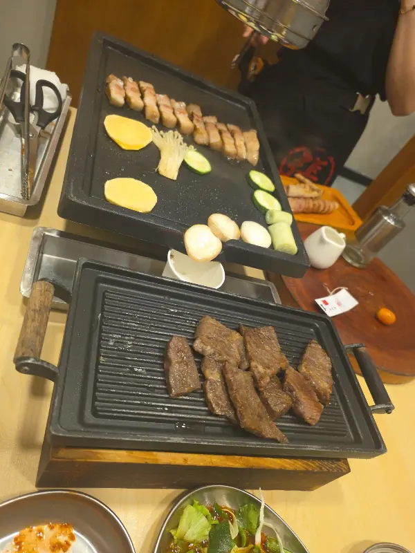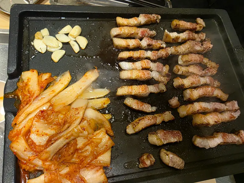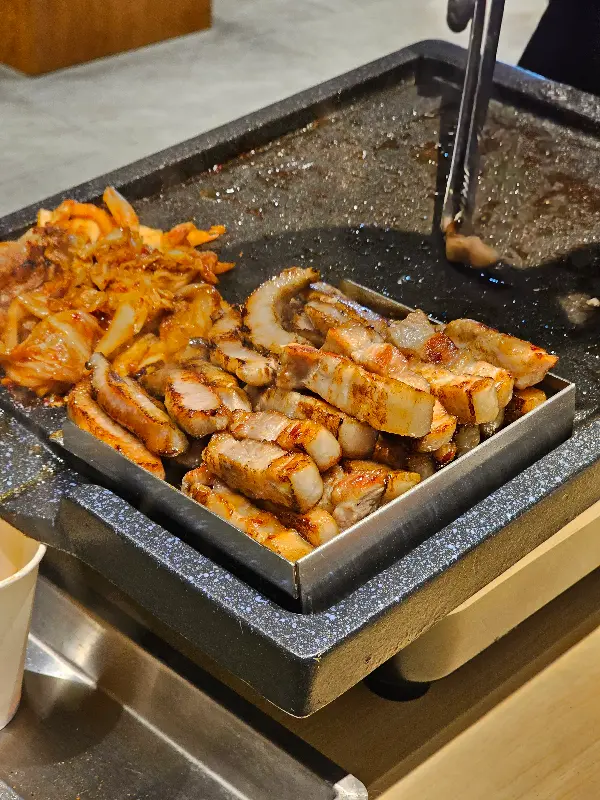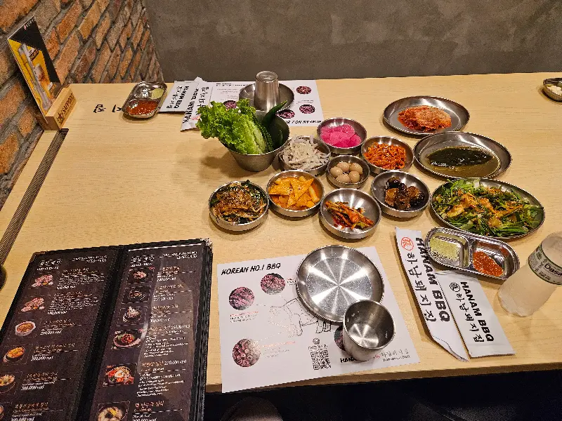 하남돼지집의 가장 큰 장점 중 하나는 바로 직원들이 직접 고기를 구워준다는 점이다. 능숙한 솜씨로 고기를 뒤집고 자르는 모습은 마치 전문가의 손길을 보는 듯했다. 덕분에 우리는 편안하게 앉아 맛있는 고기를 즐길 수 있었다. 특히 한국어를 능숙하게 구사하는 직원이 있다는 점은 한국인 손님들에게 큰 메리트다. 반찬 요청이나 궁금한 점을 물어볼 때 언어 장벽 없이 소통할 수 있다는 점은 편안함을 더해준다.