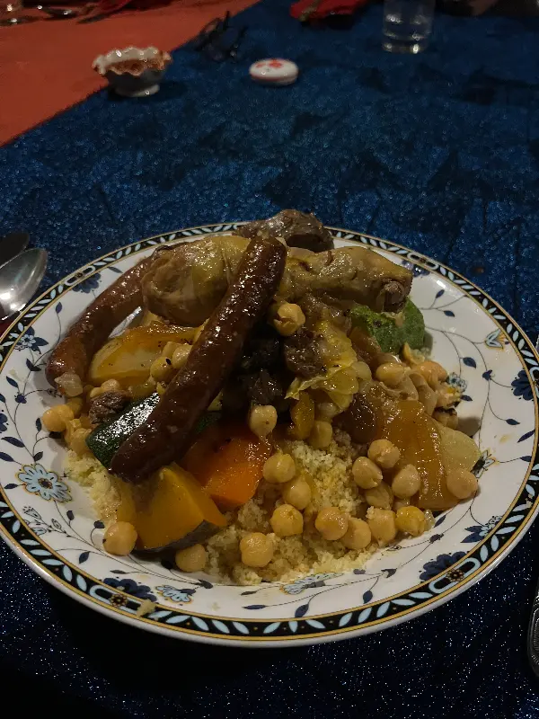 마라케시 리아드의 대표 메뉴는 단연 타진과 쿠스쿠스입니다. 타진은 모로코 전통 냄비에 고기와 채소를 넣고 장시간 뭉근하게 끓여낸 스튜로, 깊고 풍부한 맛이 일품입니다. 특히 이곳의 양고기 타진은 잡내가 전혀 없고, 양고기가 입 안에서 살살 녹을 정도로 부드럽습니다. 쿠스쿠스는 세몰리나 밀로 만든 작은 알갱이 파스타로, 다양한 채소와 고기를 곁들여 먹습니다. 마라케시 리아드의 쿠스쿠스는 풍미가 가득하고, 민트 티와 함께 마시면 마치 마라케시에 있는 듯한 기분을 느낄 수 있습니다.