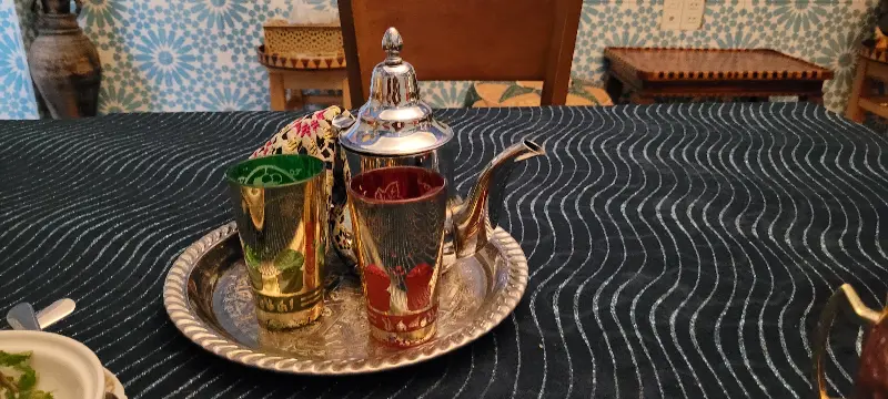 모로코 전통 주전자에 담겨 나오는 민트 티는 향긋하고 달콤합니다.