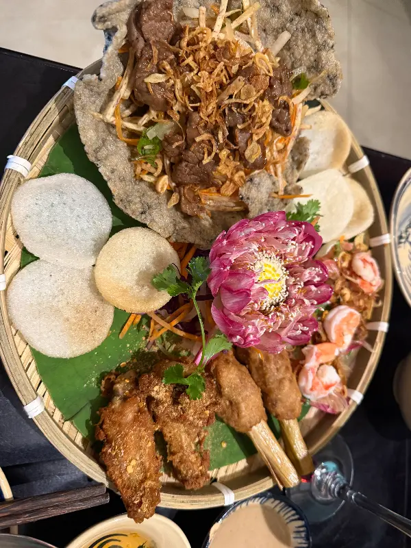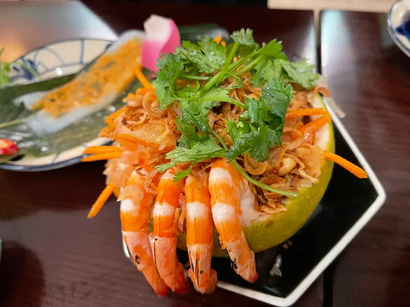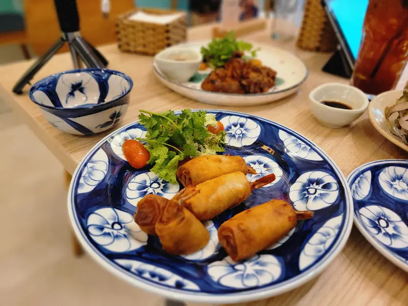 메뉴를 펼쳐보니 쌀국수, 반미 등 익숙한 메뉴 외에도 처음 보는 베트남 가정식 요리들이 가득했다. 고민 끝에 몇 가지 메뉴를 주문하고, 음식이 나오기를 기다리는 동안 설렘이 가득했다. 잠시 후, 화려한 색감과 정갈한 모양새를 뽐내는 요리들이 테이블 위에 놓였다. 사진에서 보이는 것처럼, 덴 롱은 맛뿐만 아니라 시각적인 아름다움에도 신경 쓴다는 것을 알 수 있었다.