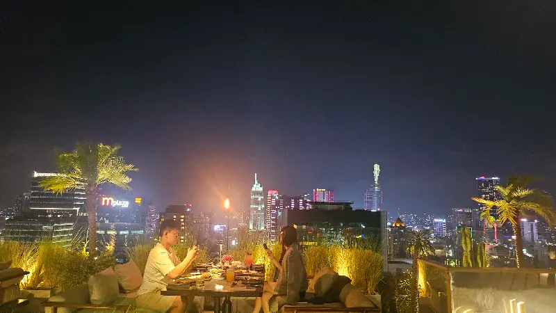 식사를 마치고 루프탑 바에 자리를 잡았습니다. 시원한 바람을 맞으며 칵테일 한 잔을 마시니, 하루의 피로가 싹 가시는 듯했습니다. 밤이 깊어갈수록 야경은 더욱 아름다워졌고, 도시의 불빛들은 마치 하늘에 떠 있는 별들처럼 반짝였습니다.