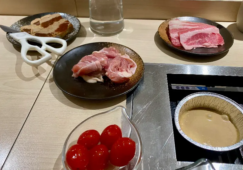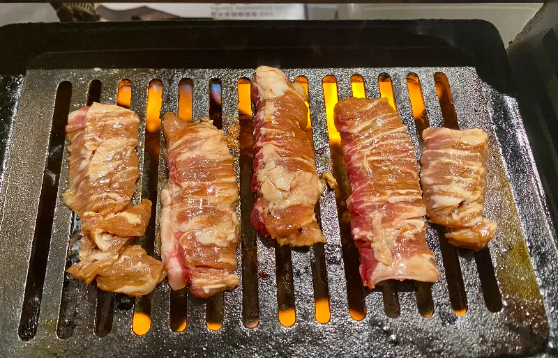 드디어 고기를 굽기 시작했다. 개인 화로에 불을 지피고, 조심스럽게 고기를 올렸다. 치익- 하는 소리와 함께 맛있는 냄새가 코를 자극했다. 얇게 썰린 소고기는 금세 익어갔다. 육즙이 올라오는 순간, 먹기 좋은 크기로 잘라 입으로 가져갔다.