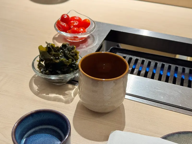 문을 열고 들어서자 은은한 조명과 함께 세련된 인테리어가 눈에 들어왔다. 혼자 방문했음에도 불구하고 어색함 없이 편안하게 자리를 안내받았다. 테이블마다 놓인 개인 화로가 눈에 띄었다. 혼자서도 오롯이 고기 맛에 집중할 수 있도록 배려한 공간이라는 인상을 받았다.